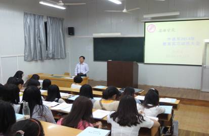2014923晚上7点半,我系2014年秋季教育教学实习动员大会在江南校区六号楼6405教室召开。系副主任张哲华、实习带队教师刘荣华、汪琦、王欢以及全体2015届师范毕业生参加了会议。