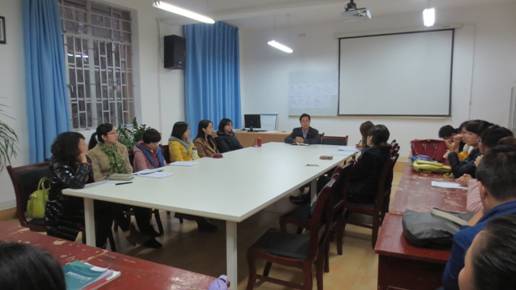 最后,张主任做了总结发言。他指出,英语专业教师要结合课程,认真思考学生专业技能培养方案的修订,为学生语言应用能力的提高献言献策。同时,他还对我系期中教育教学检查工作做了安排。