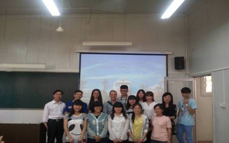 2015年5月,“2015 中西文化之约”系列联谊会在江南校区6号教学楼6405教室正式启动。联谊会由外语系与国际合作交流处共同举办,通过开展中西方文化互动学习活动,以达到促进学生语言技能提升,加强中西文化交流之目的。外语系副主任张哲华,教研室主任王刚,跨文化交际课程教师王欢,国际处留学生项目负责人李泊霖,外教Frank,留学生代表,刚刚出国留学的杨思文、夏晓婷同学与2014级英语专业学生共同参与了首期联谊会。