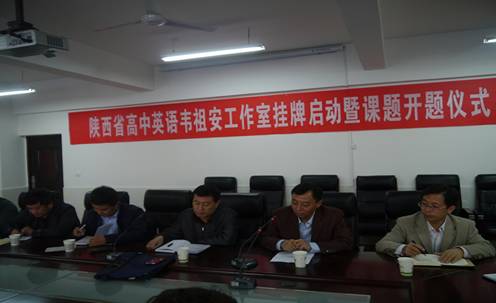 在仪式上,工作室负责人韦祖安老师介绍了工作室人员构成和承担的陕西省“十二五”规划课题《欠发达地区中学英语教学中学生跨文化意识培养的实践研究》的准备启动情况。省级中学英语教学能手胡镕等代表工作室成员表态发言,将以工作室为平台,珍惜机会,大胆探索,勇于创新,多出成绩。